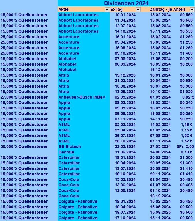 ghost_69 November 23, 2024 Kleines Update: ... nichts gekauft oder verkauft, nur das Shining der Börse, Nestle wurde durchgereicht ... ... dadurch ist die Schweiz einen Platz nach unten gerutscht ... Die Mischung macht es aus: ... es gab die letzte Dividende für den November ... ... CAT hat gezahlt und die Aktie ist weiter gestiegen ... ... dieser November liegt damit um 19,7% höher als der vom letzten Jahr ... ... insgesamt liege ich bei etwas über 5,9% höher als letztes Jahr und da kommt noch ein Monat ... ... das Depot liegt kurz vor einem neuen ATH. Ghost_69 Diesen Beitrag teilen Link zum Beitrag