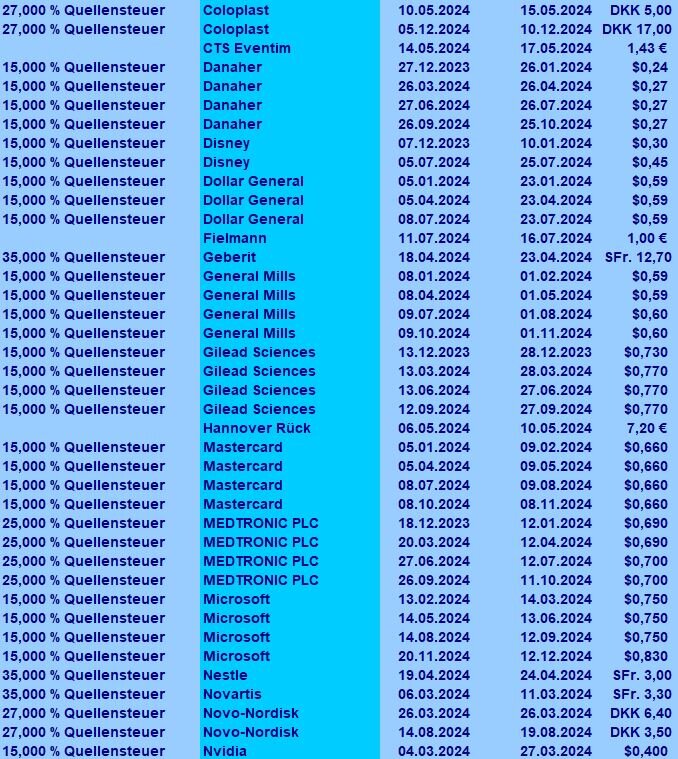 ghost_69 November 16, 2024 Splash und Dash: Börse läuft wie eine Achterbahn mit einem freien Fall integriert. ... es gab wieder Dividenden ... ... Apple, Abbott, Accenture (erhöht um 14%), Colgate und P&G ... ... damit liegt der November schon 3,3% höher als im letzten Jahr und ein Zahler kommt noch ... ... insgesamt liege ich bei etwas über 5,1% über dem letzten Jahr und es kommt noch 1 Monat. Ghost_69 Diesen Beitrag teilen Link zum Beitrag