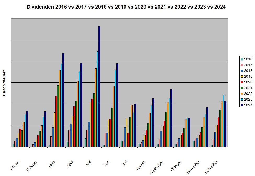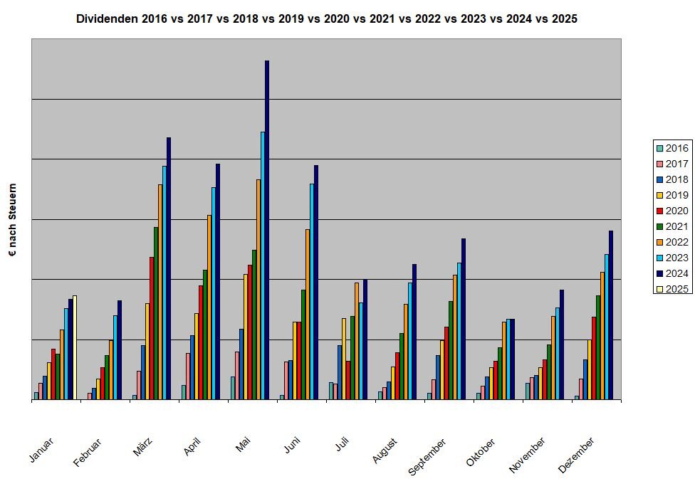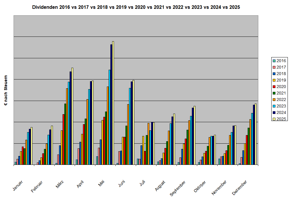 ghost_69 Januar 18, 2025 Kleines Update: ... nur der Lauf der Börse ... Die Mischung macht es aus: ... es gab wieder Dividenden ... ... Thermo Fisher und Disney haben gezahlt ... ... damit ist der Januar schon 10,2% höher als letztes Jahr und eine Dividende kommt noch ... ... insgesamt liege ich bei etwas über 5,4% gegenüber dem letzten Jahr ... ... ich bin im PLUS, aber mit höheren Schwankungen ... Ghost_69 Diesen Beitrag teilen Link zum Beitrag