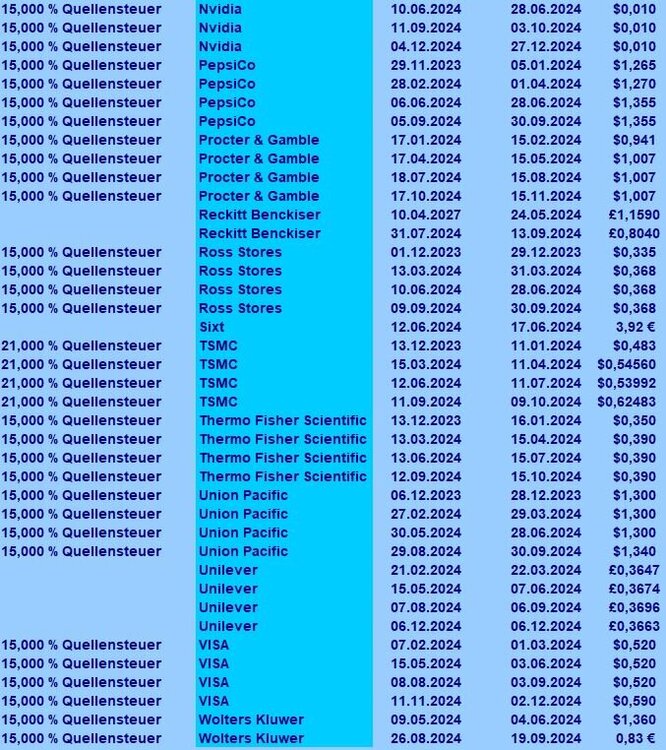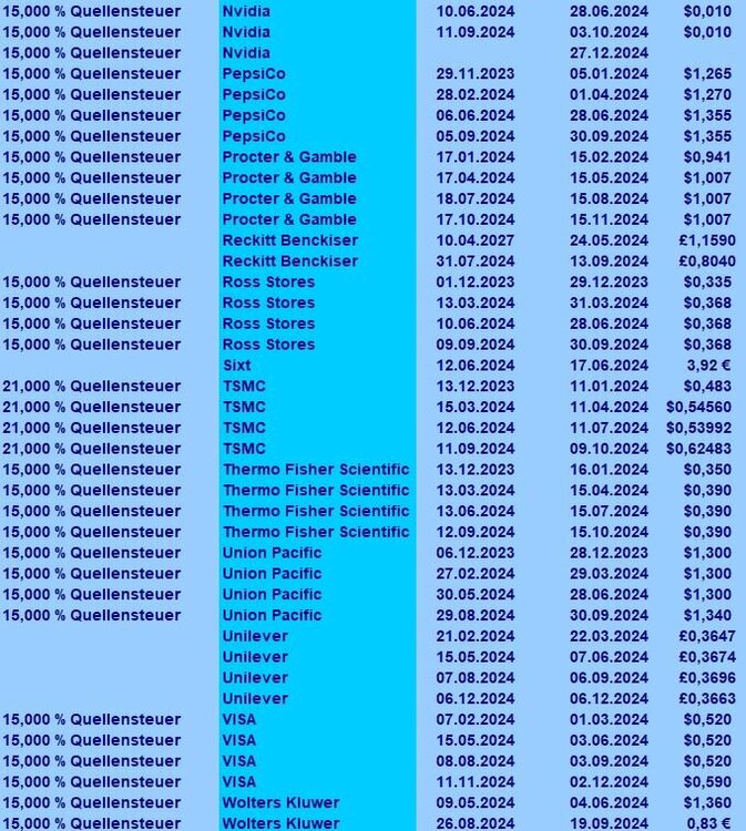 ghost_69 Dezember 7, 2024 Splash und Dash: ... in dieser Woche gab es eine Neues High-High-High oder Ho-Ho-Ho im Depot ... ... und es gab wieder Dividenden ... ... VISA (erhöht um 13%) und Unilever haben gezahlt ... ... damit hat der Dezember schon 54% vom Vorjahr erreicht ... ... insgesamt liege ich gegenüber dem Vorjahr um etwas über 10,3% höher ... Ghost_69 Diesen Beitrag teilen Link zum Beitrag