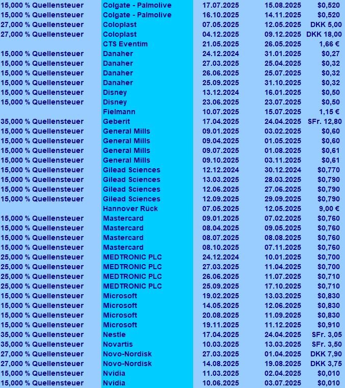 ghost_69 Oktober 11, 2025 Splash und Dash: ... es gab wieder Dividenden ... ... TSMC hat die Dividende um etwas mehr als 5% erhöht und Altria um fast 4% und beide haben gezahlt ... ... damit ist der Oktober bei über 90% vom letzten Oktober und es kommen noch 3 Zahler ... ... insgesamt liege ich bei 97% gegenüber dem Vorjahr und ab November wird sich das erhöhen ... Ghost_69 Diesen Beitrag teilen Link zum Beitrag