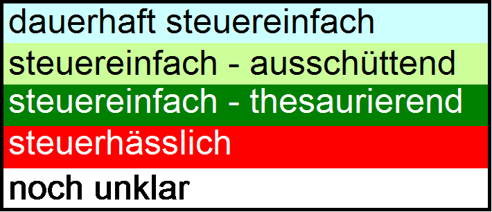 Sapine Dezember 14, 2014 Ich kann mich nur anschließen - eine sehr gute Übersicht mit vielen Informationen. Gerade die TD wird oft viel zu wenig beachtet und die TER führt ja bisweilen in die Irre. Ein wenig unklar finde ich noch die Beschreibung steuereinfach ausschüttend := KESt-Abzüge werden durch eine deutsche KAG oder Depotbank jährlich automatisch vorgenommen. Besonders interessant, wenn der KESt-Freibetrag noch nicht ausgeschöpft ist.Wenn ich es richtig sehe, hast Du hier auch die Fonds mit eingegliedert, deren Ausschüttungen hoch genug sind, die Steuern für die ausschüttungsgleichen Erträge der Teilthesaurierungen abzuführen (Bsp. wären ausschüttende UBS oder HSBC). Da würde ich mir noch eine entsprechende Ergänzung wünschen, auch um Rückfragen zu vermeiden: "Fonds xyz ist doch (teil)thesaurierend, wieso und überhaupt ist der jetzt steuereinfach oder nicht?" Bei etlichen ETFs besteht das Problem, dass sich die Bedingungen irgendwann ändern. Da stellt beispielsweise der dbx bei etlichen Fonds auf Replizierung um oder ein anderer (comstage und amundi wenn ich recht erinnere) verändert seine Gebühren und schon hat das Auswirkungen auf die mühsam erarbeiteten Werte oder genauer auf die zukünftig zu erwartenden Werte. Ich weiß zwar nicht, wie man solche Informationen in Deine Tabellen integrieren kann, aber vielleicht reicht ja auch schon die eine oder andere Fußnote, wo man Änderungen mit einem Datum vermerkt. Ich habe eben z.B. mal den UBS ETFs plc - MSCI USA SF UCITS ETF (USD) A-acc IE00B3SC9K16 nachgeschaut, weil der 2014 zu steuerhässlich mutiert. Das ist ein Fonds auf Swapbasis und dennoch produziert er seit 2014 ausschüttungsgleiche Erträge. Da würde mich beispielsweise mal interessieren, was sich geändert hat. Haben die ein anderes Trägerportfolio oder was ist da los? Dein "beige" kommt bei mir übrigens rosa an, aber auch das eine super Information!! Diesen Beitrag teilen Link zum Beitrag