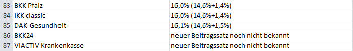 Humunculus Dezember 18, 2015 Die letzten Tage gab es einige Berichte zu der Erhöhung des Zusatzbeitrages. Hier mal eine Übersicht: Metzinger BKK: 14,6 (+0!) BKK Faber-Castell & Partner: 15,1 (+0,15?) HKK: 15,19 (+0,19) BKK ZF & Partner: 15,3 (+0,2) TK: 15,6 (+0,2) GKV Standard: 15,7 (+0,2) Barmer: voraus. 15,7 (+0,2) KKH: 15,8 IKK Classic: voraus. 15,9 DAK: 16,1 (+0,6) Audi BKK + Siemens BKK waren auch ganz ok vom Beitrag und den Rückerstattungsmöglichkeiten, habe ich aber nicht recherchiert. Die Metzinger behält als einzige mir bekannte Kasse ihren Beitragssatz konstant. Leider nur eine Alternative für Badener und Schwaben...Ansonten bleibt der relative Abstand gleich, nur die DAK nimmt einen richtig kräftigen Schluck aus der Pulle. Ich bleib angesichts Beitragsrückerstattung- und Selbstbehaltoptionen bei der BKK ZF, sind mir der Aufpreis zur Faber-Castell und HKK Wert. Leistungen benötige ich ohnehin nie/kaum, und wie ich gesehen habe, unterstützt (inzwischen?) auch die ZF sogar Osteopathie. Nur bei Impfungen für etwa Südostasien macht sie weniger als andere... Diesen Beitrag teilen Link zum Beitrag