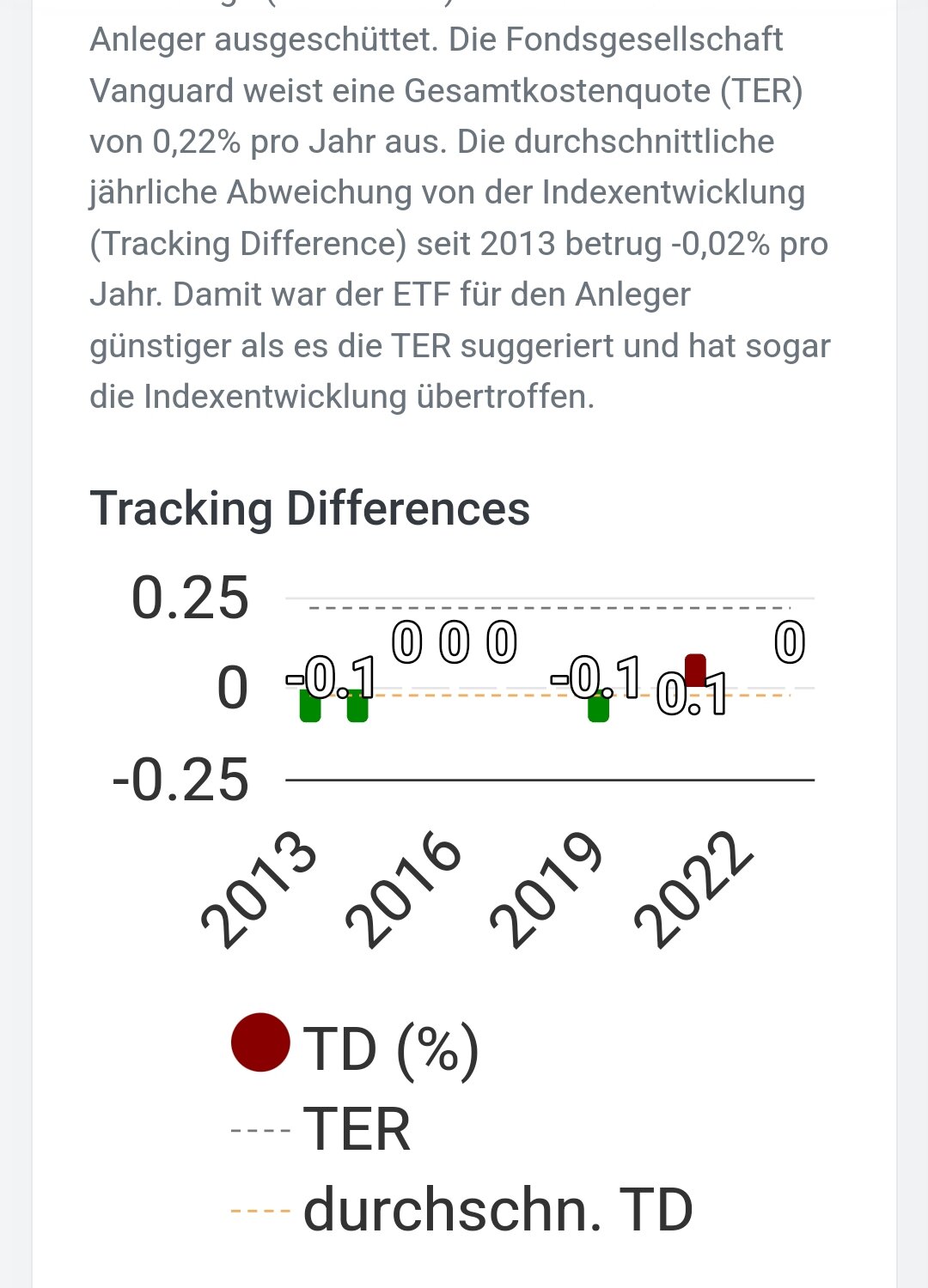 Bassinus Juli 8, 2024 Der Vanguard macht fast ne Punktlandung bei der TD. Und die ist am Ende ausschlaggebend. Was nützt mir, wenn sie die Ter auf 0,1 senken aber zukünftig die TD genau bei 0,1 bleibt. Da Lob ich mir doch weiter den Durchschnitt von -0,02 der letzten 10 Jahre. Kann das der invesco? Wir reden in 10 Jahren drüber. Diesen Beitrag teilen Link zum Beitrag