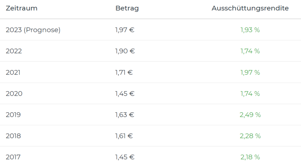 LaRoth Juni 13, 2023 vor einer Stunde von Mangalica: Die Ausschüttungsrendite wird dieses Jahr insgesamt aber voraussichtlich höher Ausfallen als im letzten Jahr (Quelle). ExtraETF rechnet die Ausschüttungen immer zum aktuellen Wechselkurs um, 2022 waren es aber 1,95/1,96€ (je nach Wechselkurs der Depotbank). vor einer Stunde von Mangalica: Die Vanguard-Homepage selbst gibt als Ausschüttungsrendite aktuell 1,97 % an. Ausschüttungsrendite 30 Apr 2023 - 1,97 % -> das ist nicht die für 2022 und auch nicht die von 2023 ... sondern drei Ausschüttungen aus 2022 und eine aus diesem Jahr. Diesen Beitrag teilen Link zum Beitrag