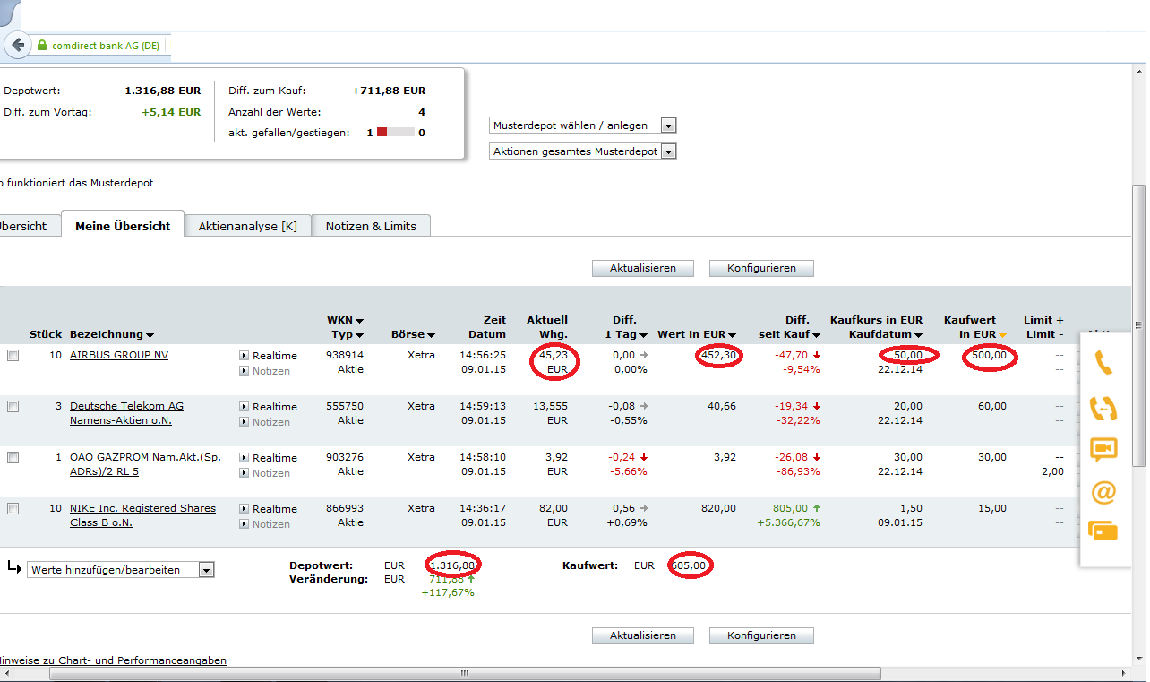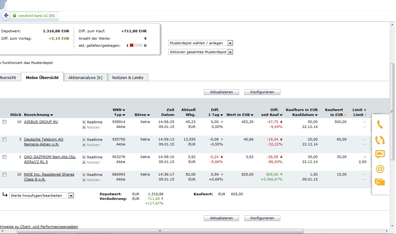 ich bin neu dabei. Um mich einwenig umzuschauen habe ich mir bei com direct ein Musterdepot angelegt.