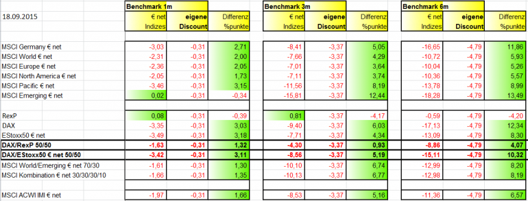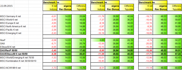 (Indexdaten und eigene Daten beziehen sich jeweils auf vergangene Monatsenddaten)