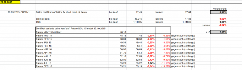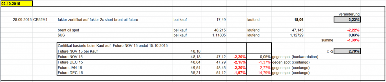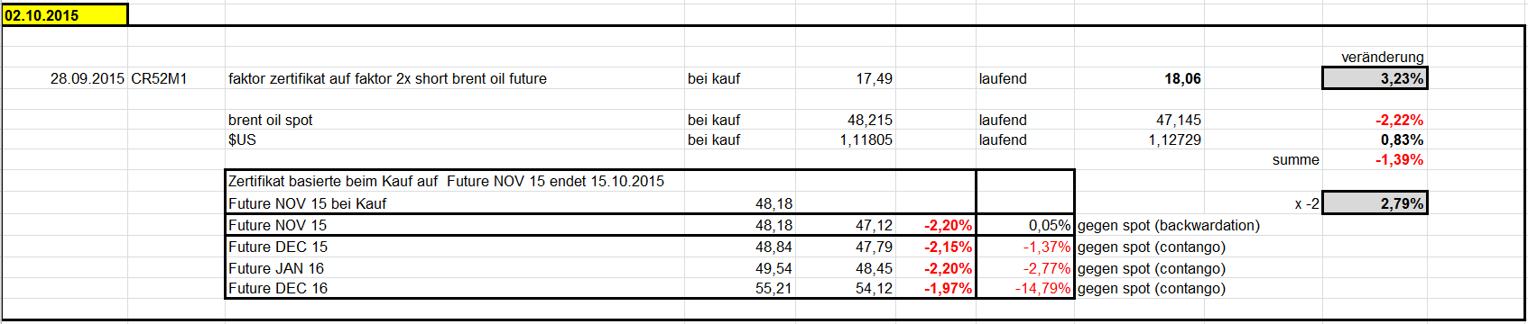 noch im Bestand befindliche short-Konstrukte mit den bisherigen Renditen: