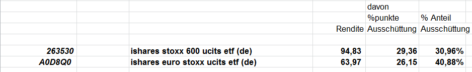 Unter meinen alten ETFs sind die beiden Europa- und Eurovarianten Stoxx600 und Eurostoxx ( in mehreren Tranchen 2008/IV gekauft) - heute gab es eine Quartalsausschüttung.