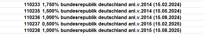 Die letzten fünf 10j Bundesanleihen im Bestand