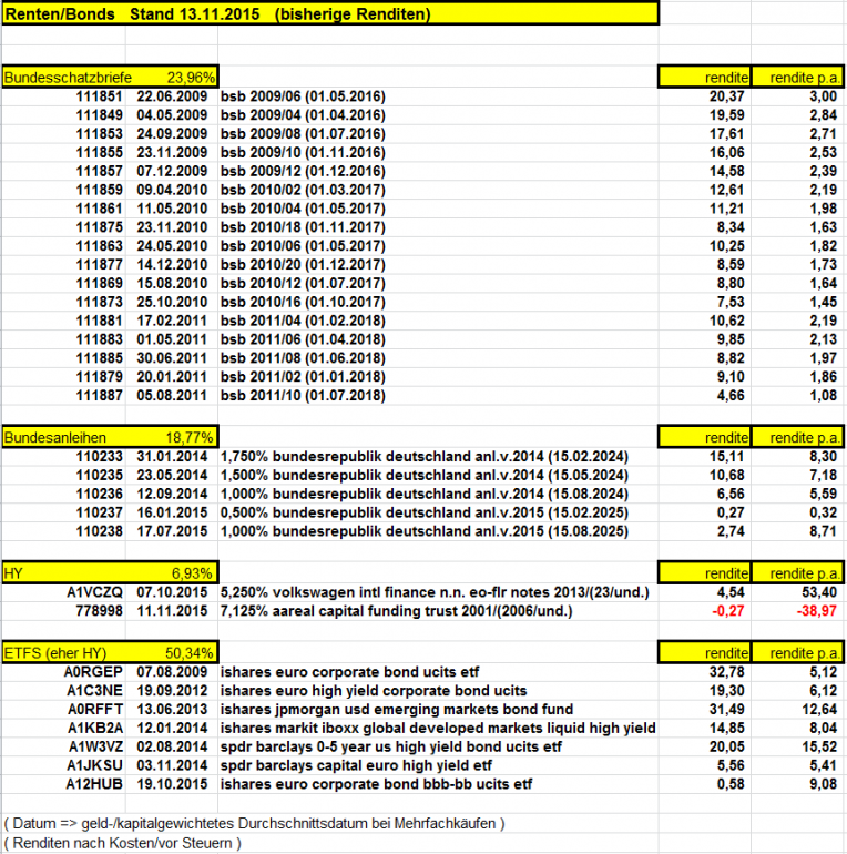 fast alle mit Disagio gekauft, bei den ersten 8 gab es bereits einen Schwellenbruch, entgegen meinen sonstigen Gewohnheiten