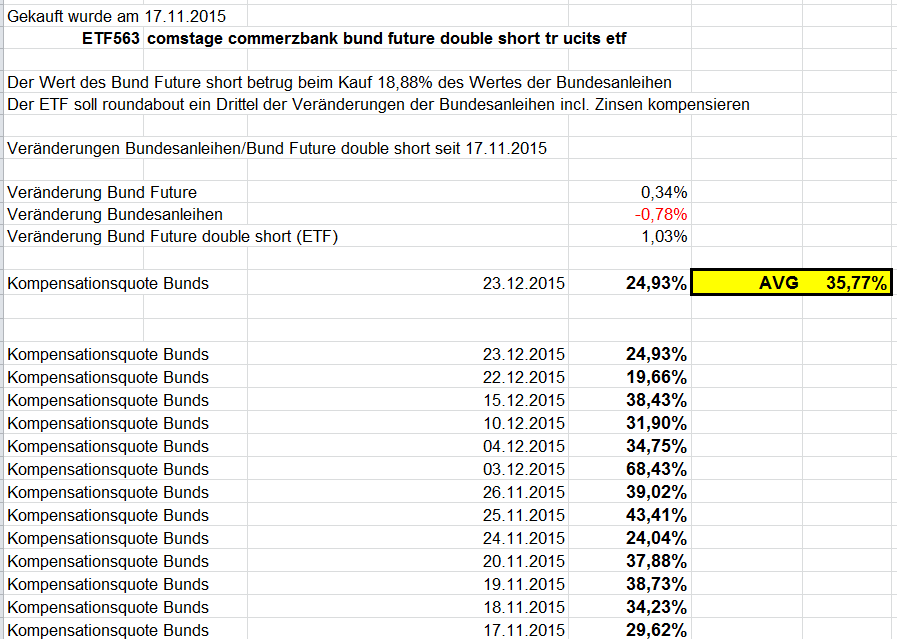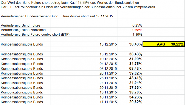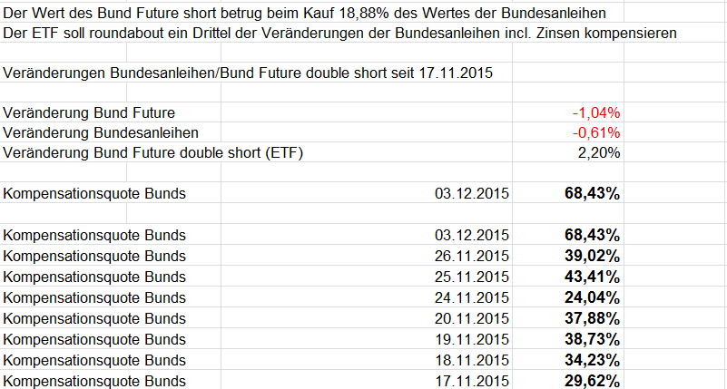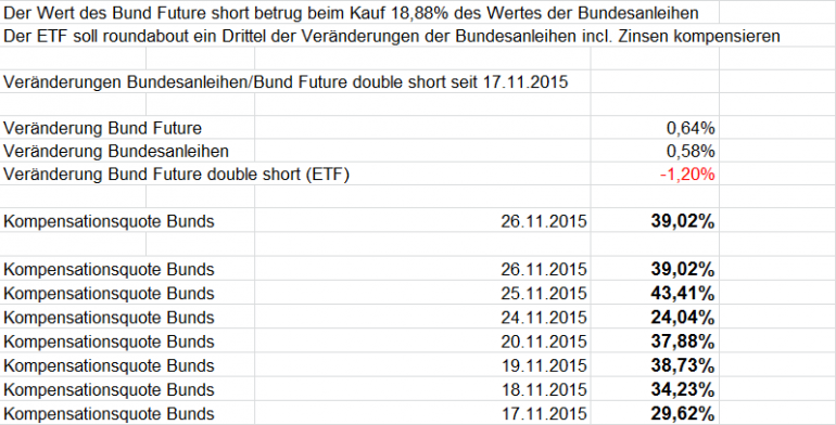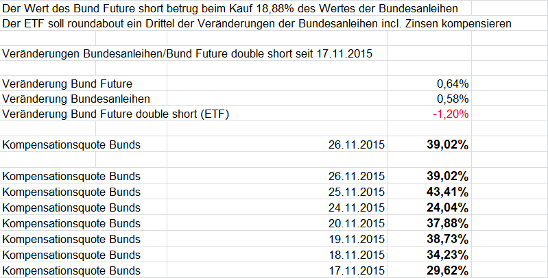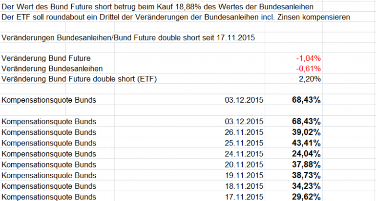 Der ETF soll roundabout ein Drittel der Veränderungen der Bundesanleihen incl. Zinsen kompensieren
