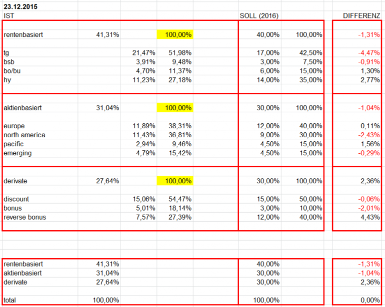 Zielrendite 0% für 2016 (nach Kosten, Steuern, Inflation)