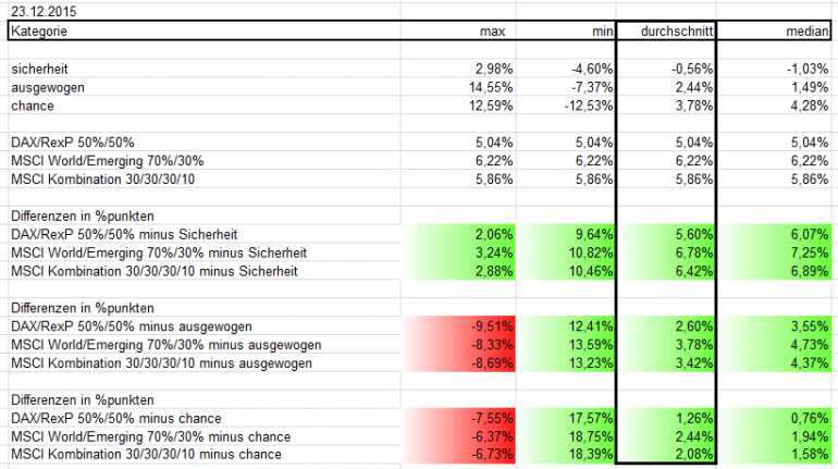 (Zu den dargestellten Ergebnissen kämen in der Realität noch Vermögensverwaltungsgebühren hinzu - bzw. würden die Ergebnisse noch verschlechtern)