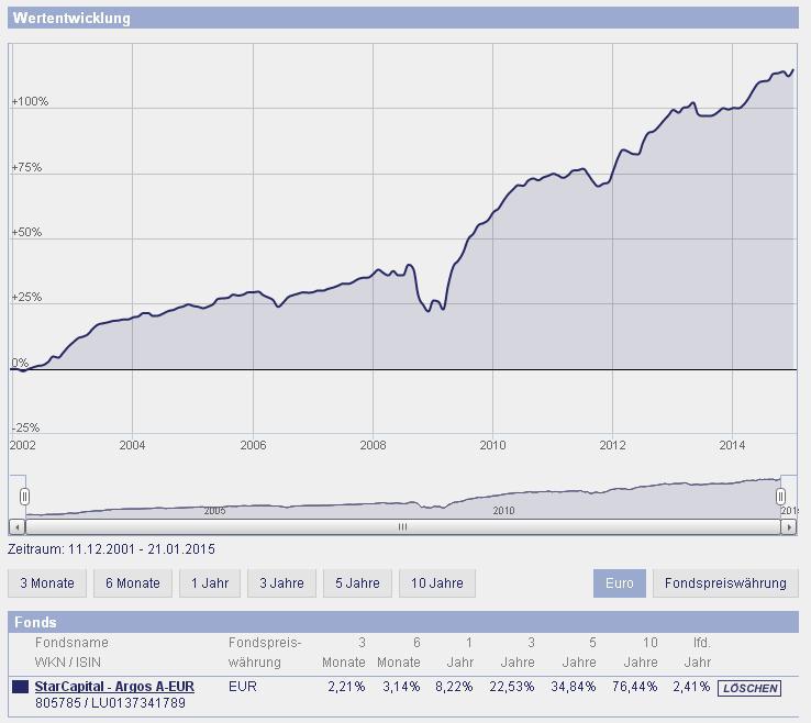 ghost_69 Januar 22, 2015 Es gibt doch sehr viele Daten zu diesem Fonds: StarCapital - Argos A - EUR.pdf Dazu gibt es die Seite der Gesellschaft: http://www.starcapital.de/fonds/starcapital-argos 2015-01_Factsheet_Argos.pdf und auch die Meinungen der Gesellschaft: StarInvest_Januar2015.pdf Ob der Fonds nun etwas für Dich ist, mußt Du selber entscheiden. Ghost_69 :- Diesen Beitrag teilen Link zum Beitrag