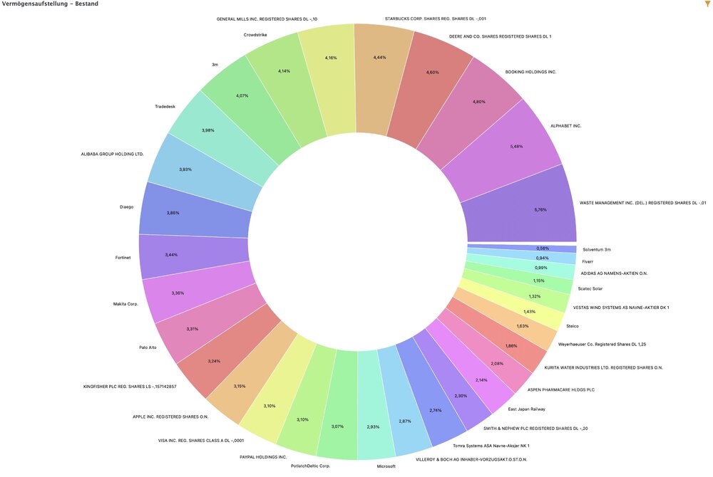 wertomat Dezember 8, 2024 vor 5 Stunden von Sapine: Bei aller Vorsicht für den Blick auf die Zukunft finde ich das sehr interessant, weil ja im allgemeinen gerne argumentiert wird, dass die Vola mit Einzelaktien höher sei. Bei größeren Depots muss das nicht zwingend so sein. Interssant auch, weil mein Portfolio ja auch einiges an Smallcaps, kleinere Tech-Aktien, Öko-Aktien etc. beinhaltet. Es ist sicher kein Portfolio, dass sich jemand so bauen würde, der vor allem auf geringe Volatilität aus ist. vor 5 Stunden von Sapine: Bei aller Vorsicht für den Blick auf die Zukunft finde ich das sehr interessant, weil ja im allgemeinen gerne argumentiert wird, dass die Vola mit Einzelaktien höher sei. Bei größeren Depots muss das nicht zwingend so sein. Hast Du diese Strategie bereits im laufenden Jahr angefangen umzusetzen? Falls nein, bleibst Du bei der Idee und versuchst die Vola weiter abzusenken? Den Ansatz sklavisch zu verfolgen hat für mich noch selten viel Sinn gemacht. Ich habe bisher in den gesamten Jahren noch kaum Aktien verkauft, und wenn dann nie aus Gesichtsgründen der Volatitlität. Okay, von Tesla habe ich mich dieses Jahr getrennt, wenn auch nur, weil ich Elon Musk nicht mehr leiden kann. Nein, es ist vor allem ein "theoretisches Vorhaben" weil mein Kopf sagt, dass (mittlerweile) knapp 1,2 Millionen Euro Gesamtsumme mit Ende 40, keinen großen finanzeiellen Wünschen, und weiteren absehbaren Zuflüssen einfach reichen. Ich bin nicht auf mehr Geld angewiesen, warum also Risiken eingehen? Auf der anderen Seite sagt mein Bauch, dass ich mich mit dem Gesamtportfolio okay bis gut fühle, und dass ich auch schon damit klar kommen würde, wenns noch mal stärker einbrechen würde, und es ja trotzdem reichen würde (und auch noch Zeit zur Erholung hätte). Ferner sehe ich bei Krypto für die nächsten paar Jahre viel höhere Chancen als Risiken - und bei 20% Krypto aus Volatilitätsgründen über einzelne Aktien sprechen zu wollen, ist auch irgendwie schizophren. . Gleichzeitig sehe ich, was die Gesamt-Asset-Allocation angeht, dass ich auch für Szenarien vorbereitet sind, die ein herkömmliches Aktien/Anleihen-Portfolio nicht gut wäre. Ich kann mir ein "Nicht-Weiter-Steigen von Aktien für die nächsten 10 Jahre, zunehmende Weltweite Krisen schon vorstellen, und vermute, dass ich in diesem Szenario besser als mit reinen Aktien aufgestellt wäre (ohne dass mein Portfolio eine harte Wette auf dieses Szenario ist). Ich glaube, wenn Aktien über einige Jahre schlecht laufen, würden sich andere Asset-Allocations insgesamt mehr durchsetzen, und Gold und Krypto könnten profitieren. All das macht die Umstrukturierungen, an die man zuerst denken würde, für mich nicht so einfach. . Also: Nein, ich habe noch keine strärkeren Umstrukturierungen in diesem Jahr vorgenommen. Allerdings: Bei den "soften Umstrukturierungen" durch Nachkäufe (ca. 50.000 Euro im Jahr bei gut 700.000 Aktien Gesamt) merke ich schon seit 1-2 Jahren, dass ich hier seit 2 Jahren tendenziell auf Dickschiffe setze: 3M ist in den letzten Jahren neu dazugekommen, Diaego, Microsoft (allerdings auch ein paar Nachkäufe volatilerer Aktien und die Neukäufe von Crowdstrike, Fortinet und Palo Alto). Ferner sind viele Smallcaps in meinem Portfolio (u.a. bedingt durch die Zins-Erhöhungen) eh stärker gefallen (Steico, Tomra, Vestas Wind, Fiverr, Beyond Meat) und Dickschiffe sind in den letzten 2 Jahren meiner Wahrnehmung nach allgemein besser gelaufen, so dass es eine automatische kursbedingte Umstrukturierung hin zu Anteilig mehr Large Caps gab. Wenn man sich die Torte anguckt, sieht man in der oberen Hälfte ja nicht mehr viele riskante Aktien. Diesen Beitrag teilen Link zum Beitrag