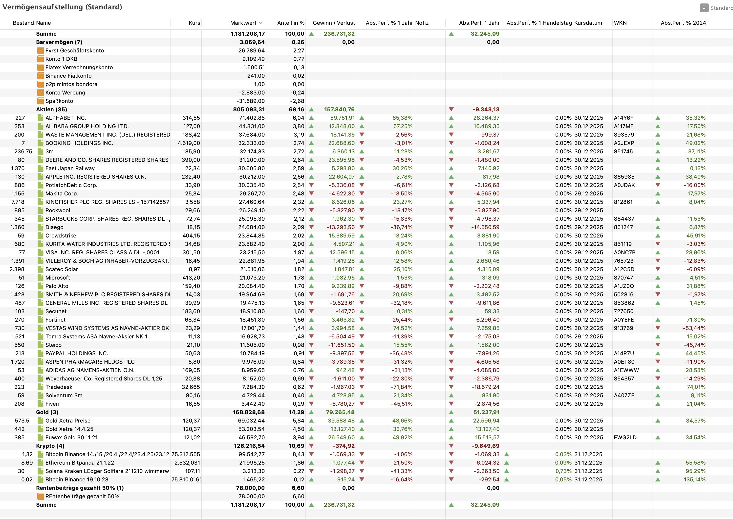 Jenseits der Entwicklung des Depots nun die persönlichen Werte: