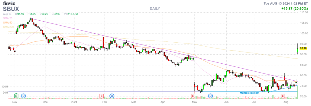 Laser12 August 13, 2024 Moin, bei SBUX gibt es einen neuen Besen bzw. CEO: Ich habe ein paar Stücke hergegeben. Diesen Beitrag teilen Link zum Beitrag