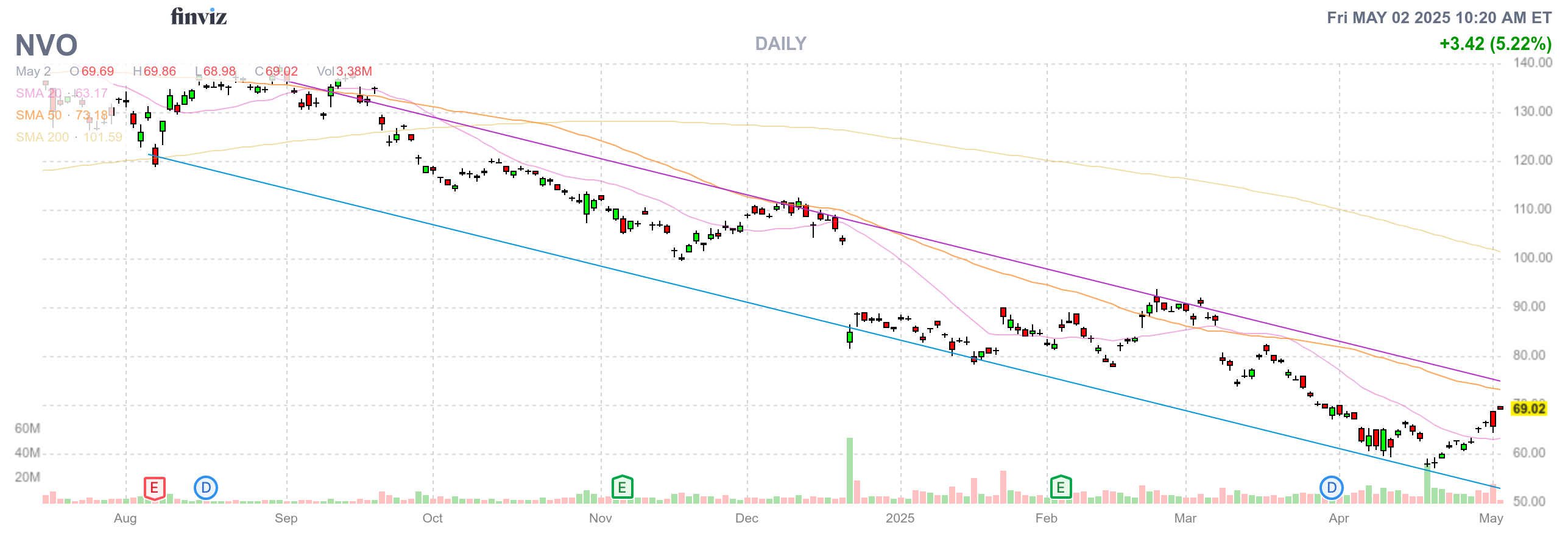 smarttrader Juni 6, 2025 Verkauf Novo Nordisk zu 65,50 Euro via Tradegate. Grund: sehr gut gelaufen und ich habe die nur für Trading gekauft. Ich vermute das es nochmal Kurse mit 62 Euro geben wird. Dividende und dänische Quellensteuer passt für mich nicht. Auf der langen Sicht, überlege ich eher die Einzelaktien zu reduzieren. Nach der Rendite Betrachtung und eindeutige Niederlage gegen den Benchmark vergeht mir die Lust immer mehr auf die Börse. Diesen Beitrag teilen Link zum Beitrag