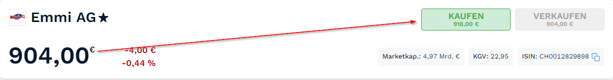 Cinquetti Oktober 17, 2023 · bearbeitet Oktober 17, 2023 von Cinquetti @eugenkss Ich habe sie gestern nachmittag bei finanzen.net zero gekauft. Der Spread war aber ziemlich hoch, ich glaube 2€. Ich wollte gestern noch eine Emmi Aktie kaufen, aber da war der Spread mit 14-15€ schon echt heftig: Vielleicht kann hier jemand mal schauen, ob das normal ist bei der Aktie? Diesen Beitrag teilen Link zum Beitrag
