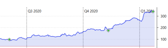 Und mir ist klar, dass es früher oder später eine Korrektur von derzeitigen Highflyern geben wird, das ist unvermeidlich. Aber ich will nicht darauf wetten, wann das sein wird. Ein Markt kann länger irrational bewertet sein, als man denkt. Wenn der Einbruch erst in 2 Jahren kommt, bin ich mit meinem heutigen Kaufkurs zu 348,15€ evtl. trotzdem gut gefahren. Wenn er früher kommt kann es eine Nachkaufchance sein. :) Zudem sehe ich von Market-Timing ab, ich investiere monatlich, egal was der Markt so macht. Außer ich sehe Kurseinbrüche, dir mir total ungerechtfertigt vorkommen, wie bei Fastly z.B. Das nutze ich gelegentlich zum Nachkauf.