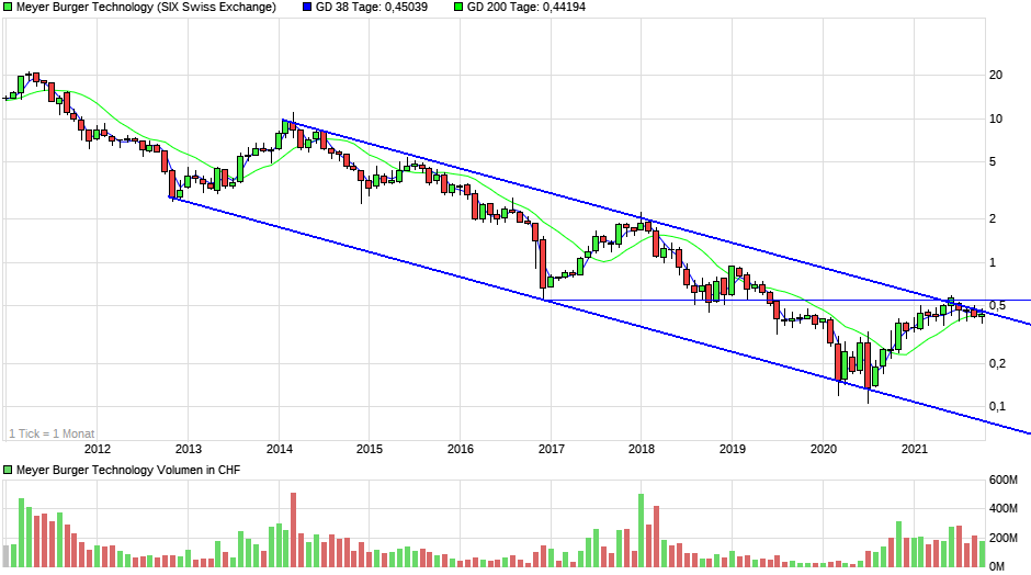 Maciej Oktober 29, 2021 Am 28.10.2021 um 11:37 von Malvolio: Heute Kauf einer kleineren Position von Meyer Burger Technology (WKN: A0YJZX. ISIN: CH0108503795) zum Kurs von knapp unter 0,42 CHF. Was war deine Motivation, genau zum jetzigen Zeitpunkt zu kaufen? Fundamental sehe ich keine Verbesserung in den Daten und chartechnisch scheint der Abwärtstrend auch noch immer voll aktiv zu sein. (Chartquelle: ariva.de) Diesen Beitrag teilen Link zum Beitrag