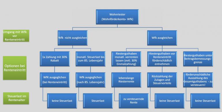 ufr Februar 26, 2015 --- Der Zeitpunkt der Tilgung des WFK ist frei. Es wäre bspw. möglich relativ kurz vor Rentenbeginn in Teilschritten zu tilgen. Womit ggf. wieder die Regelung der Kleinstbetragsrente genutzt werden könnte. Bspw. indem man über 2-3 Riester Banksparpläne geht (Verrentungspartner muss unterschiedlich sein). Dann entfiele auch die Problematik mit der Verrentung. --- Interessanter Gedanke . Nur damit ich den Ansatz richtig verstehe: Du würdest dann vor Rentenbeginn mehrere Riester-Banksparpläne bei verschiedenen Anbietern (ausreichend oder muss ich auch darauf achten, dass die Anbieter nicht denselben Verrentungspartner haben?) abschließen und das Wohnförderkonto durch ungeförderte Einzahlungen auf diese Verträge ausgleichen. Dabei dann darauf achten, dass der voraussichtliche Verrentungsanspruch aus den einzelnen Verträgen (nach Abzug der möglichen 30% Kapitalentnahme) nicht die Grenze nach SGB IV überschreitet. wenn das so klappt. Diesen Beitrag teilen Link zum Beitrag