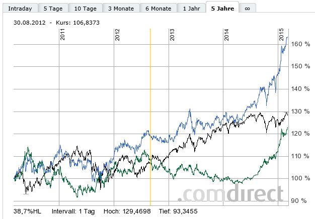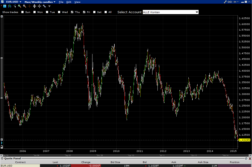 lenzelott März 5, 2015 · bearbeitet März 5, 2015 von lenzelott Tägliches Hedging (nicht Hedgeing) ist in der Regel kaum machbar und zu teuer. Normalerweise wird einmal im Monat der gesamte Bestand gehedged, d.h. in Konsequenz, im Folgemonat bis zum nächsten Hedging fließen alle positiven/negativen Änderungen und nur die Änderungen der Werte des Bestandes des Fonds/ETFs incl. der Währungsveränderung ungehedged in die Wertentwicklung des Fonds/ETFs ein. Bei fast allen gehedgten Fonds/ETFs findet daher in der Regel nur ein Teilhedging statt. In der Vergangenheit wäre es manchmal sinnvoll gewesen (z.B. Yen/Euro) manchmal eben nicht. Leider erkennt man nur ex post die Sinnhaftigkeit. Bei kleinen Abweichungen im NAV wird mit Sicherheit nicht permanent nachgehedged. Aber wenn die MIttelzu / Abflüsse ein gewisses Niveau erreicht haben, oder durch starke Kursgewinne / Verluste (open P&L seit dem letzten Hedge) das Hedgingniveau zu stark von der Zielgrösse (typisch 100%) abweicht wird mit Sicherheit nachgehedged. Bezogen auf EURUSD, anbei mal ein etwas längerfristiger Chart: Die Phasen wechseln sich stark ab, in denen Hedging Sinnvoll war oder auch nicht. Von 2006-mitte 2008 ist der MSCI Welt (€) rund 30% schlechter gelaufen wie der MSCI Welt ($), wenn man obigen EUR.USD Kursverlauf sieht weiß man warum. Warum Consors zb. in seinem Chartingtool den MSCI WORLD als USD Variante als Vergleichsindex integriert hat ist mir übrigens bis heute noch nicht klar. Onvista zumindestens vergleicht € notierte Fonds auch mit der MSCI Welt (€) Variante. Wieso er aber rund 10% mehr rauf gegangen ist als der Dollarkurs und wieso sich die die Hedge Version um nur 5% rauf bewegt hat ist mir aber etwas schleierhaft. Der EUR ist nicht nur gegen den USD eine Weichwährung geworden dank der lockeren Geldpolitik der EZB. Ich weiß nicht wo der Fonds überhall investiert ist, aber anscheinend sichert er ja quasi alle Fremdwährungsrisiken ab, oder ? Entsprechend müßten auch Investitionen in anderen Märkten durch die Währungssicherung schlechter gelaufen sein. Diesen Beitrag teilen Link zum Beitrag