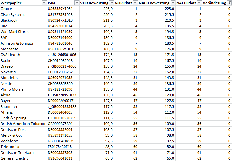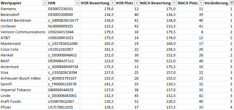 Hamsterrad Mai 14, 2015 · bearbeitet Mai 14, 2015 von Hamsterrad Aktuelle Version Aktien Bewertung - Kopie.xlsx Veränderungen gegenüber der letzten Version Weitere Datenbereinigungen Anpassung Grenzen zur KBV Bewertung Anpassungen bei der Ausschüttungsquote um einen fair(er)en Vergleich zwischen ausschüttenden und aktienzurückkaufenden Unternehmen zu ermöglichen Erweiterung um Aktienanzahl für Jahr - 11 (aktuell 2004), Erweiterung + Erstellung der darauf basierenden Berechnungen und Pivottabellen Neues Tabellenblatt "Fiktive_Dividende" Berechnungen auf dem neuen Blatt:- Fiktive Dividende = ((Anzahl Aktien Vorjahr - Anzahl Aktien Jahr) * Schlußkurs Jahr) / Anzahl Aktien Jahr- Wenn fiktive Dividende > 0 dann Fiktive Dividende + Dividende, sonst nur Dividende; Die Ausgabe neuer Aktien führt so nicht zu einer negative Dividende Erweiterung Tabellenblatt "Ausschüttungsquote" um Daten vom Blatt "Fiktive_Dividende" für die Jahre + 0 bis - 10 (Die Berechnung erfolgt dann auf Basis Aktienrückkauf + Dividende) zusätzlich zu der bisherigen Berechnungsmethode Berechnung "Quote Mittel" inkl. fiktiver Dividende Berechnung "Quote+360d" exkl. fiktiver Dividende (wobei sich das Ergebnis inkl. fiktiver Dividende nicht verändern würde) Berechnung "Quote Abweichung" exkl. fiktiver Dividende um zu positive Abweichungen von Unternehmen die Aktienrückkäufen durchführen zu verhindern Überarbeitung / Erweiterung der Anleitung folgt noch. Ist erfolgt Gewinner Neutral Verlierer Diesen Beitrag teilen Link zum Beitrag