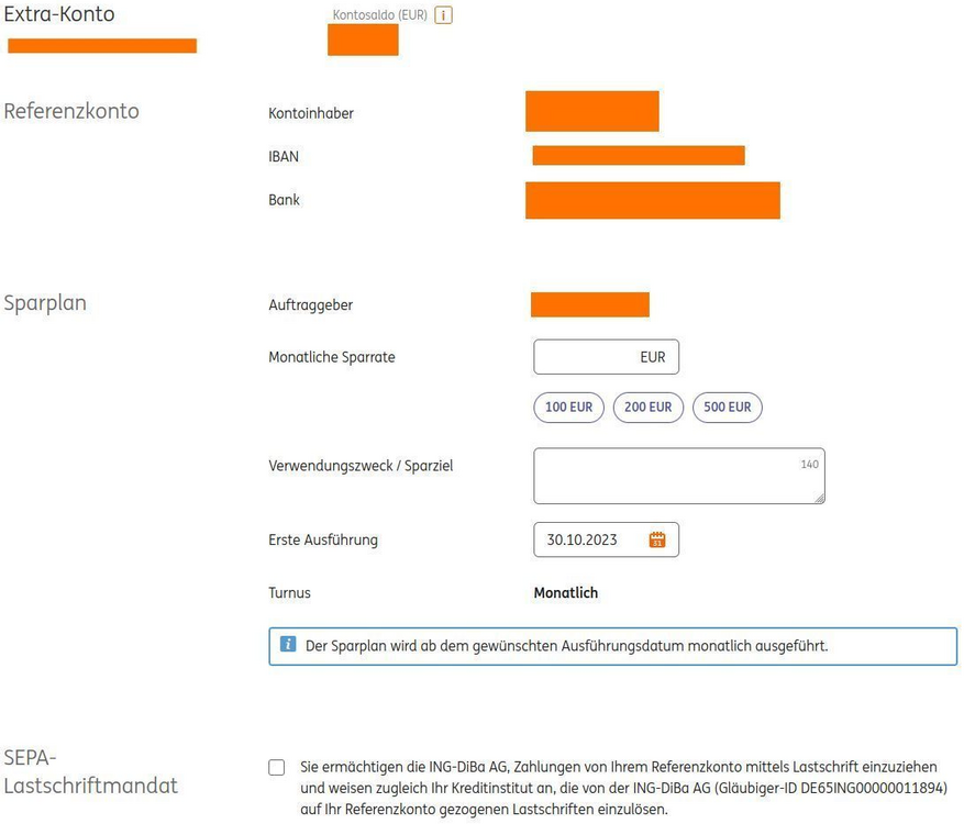 Geldhaber Oktober 26, 2023 ING verschenkt offenbar 10 €: https://www.ing.de/sparen-anlegen/sparen/tagesgeld/sparplan/ Zitat 10 Euro Prämie für Ihren Sparplan Zum Weltspartag am 30. Oktober belohnen wir fleißige Sparer*innen! Richten Sie bis zum 1.11.2023 einen monatlichen Extra-Konto Sparplan in Höhe von mind. 100 Euro ein und erhalten Sie nach dreimaliger Ausführung Ihre 10 Euro Prämie. Also 3x 100 € sparen und 10 € erhalten. Keine ETFs/Wertpapiere, sondern Tagesgeld! Ganz einfach also. Das Geld kann bei Bedarf auch wieder abgezogen werden. Tagesgeld eben. Diesen Beitrag teilen Link zum Beitrag