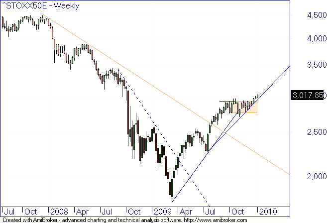 Deshalb hier ein vorgezogener Blick auf den Wochenchart des Stoxx-Index: