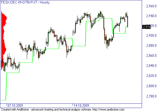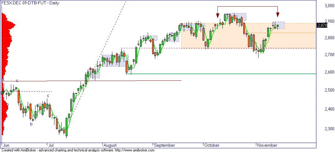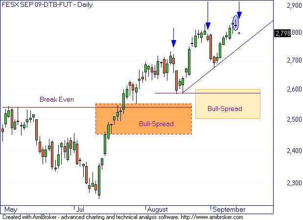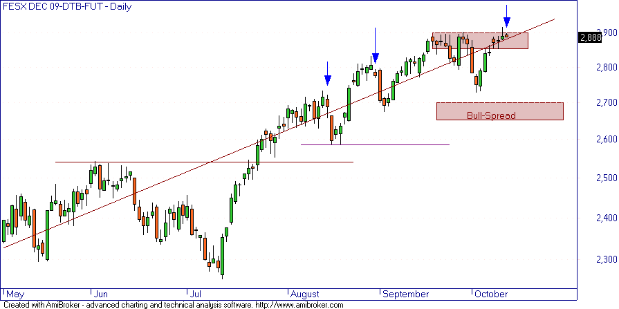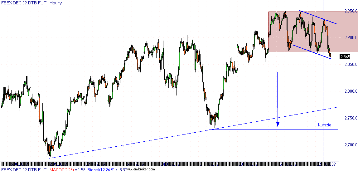 Die Ausschläge nach unten werden jedoch heftiger (und vorallem auch schneller) und beim Stoxx-Future ist bei 2950 der Deckel drauf.