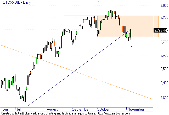 Fällt der Stoxx weiter, so existiert noch ein kleiner Sicherheitspuffer von 15 Punkten.