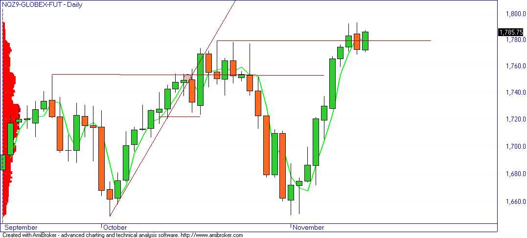 Aktuell sieht alles nach einer Bestätigung der oberen Begrenzung der Tradingrange aus, die seit Mitte September ausgebildet wurde.