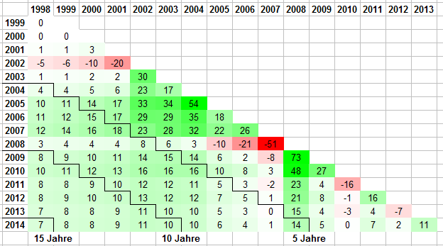 Renditedreieck MSCI World / ACWI