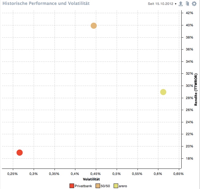 Warambuffet Mai 13, 2015 Sinnvolle Vergangenheitsvergleiche von aktiv gemanagten und passiven Portfolios sollten nach meinem Verständnis mindestens über einen Börsenzyklus hinweg reichen, besser über mehrere. Im kurzen Zeitrahmen einer Aktien-Hausse gewinnt wie man leicht sieht typischerweise der billigste passive Ansatz mit der höchsten Aktienquote. Oder aber der Aktienfonds, der in diesem Zeitraum den Index des ETF nach Kosten schlagen konnte. Eine triviale Erkenntnis, die einen für die Zukunft nicht unbedingt weiterbringt. Sehr guter Einwand, toll wäre ja, wenn einer der Verfechter der aktiven Vermögensverwaltung mal seine erzielten Daten präsentiert. Vielleicht gibt es hier User, die das bereits seit mehreren Börsenzyklen erfolgreich demonstrieren können? Hat die Bank Vorgaben Risikovorgaben gehabt? Hast Du auch ätere Daten, z.B. 2006-2010? Mich interessiert wie sich die Privatbank bei der Lehmann-Frage präsentiert hat. ;-) Die Bank hatte Risikovorgaben, hat sie aber schleichend immer riskanter verändert, heute kann mir niemand die aktuelle Aktienquote nennen aufgrund der vielen Multi-asset-Fonds. Leider habe ich nur Daten seit 2012... Diesen Beitrag teilen Link zum Beitrag