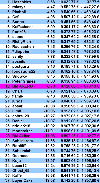 Oh das ist wohl das erst mal, dass bei allen der momentane Wert unter 10 TEURO liegt. :blink: