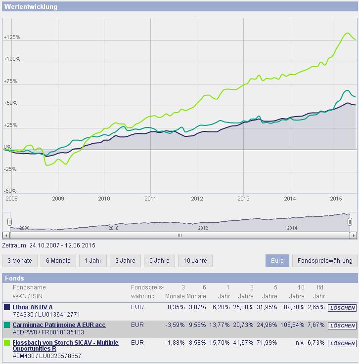 Ich kann mir auch gut vorstellen, unabhängig von meiner Einmalanlage mit 4 x 2500€ oder 3x 3300€ einen Sparplan auf einen aktiven Mischfonds zu machen, z.B. 200€ Carmignac, 200€ Ethna Aktiv; 200€ Privatfonds Kontrolliert oder so...