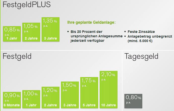 BigSpender09 September 7, 2015 Aktuell gibt es ein mMn sehr interessantes TG und FG Angebot der neu aufgestellten Opelbank. Vor allem für Leute wie mich und meine Freundin, die eine deutsche Einlagensicherung bevorzugen, besonders interessant. TG = 1,05% FG 1J = 1,40% FG 2J = 1,55% FG 3J = 1,75% Diesen Beitrag teilen Link zum Beitrag