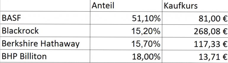 Ziel ist es ca. 10 Aktienpositionen mit etwa gleicher Gewichtung aufzubauen. Das ist in meinem Enthusiasmus (s. oben und unten) erstmal gründlich mißlungen, werde ich aber mit der Zeit ausgleichen.