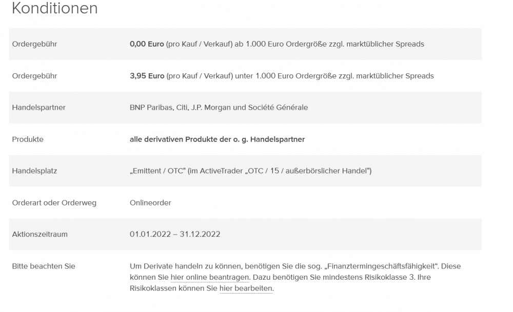 beamter97 September 27, 2022 vor 22 Stunden von Mojo-cutter: Für die CU3RPS, wenn ich bei consors OTC beim Emittent handle, kommen jedenfalls keine weiteren Kosten dazu, Das ist derzeit so, weil bei Consors alle Zertifikate der SoGen ohne Ordergebühren gehandelt (Kauf und Verkauf je mind. 1000€) werden. In der Kostenübersicht sollten aber die regulären Orderkosten aufgeführt sein, und ein gleichhoher Betrag unter "Zuwendungen Dritter" abgezogwen werden. Diesen Beitrag teilen Link zum Beitrag