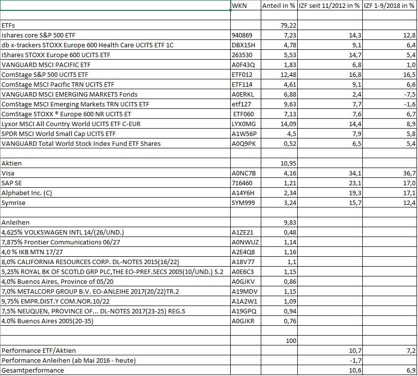 in aller Kürze Ergebnis für 2018 und seit 12/2012 (vor Steuern, nach Gebühren). Berechnung mit PP, Anleihen mit eingepflegt, deshalb mit etwas Vorsicht zu geniesen.