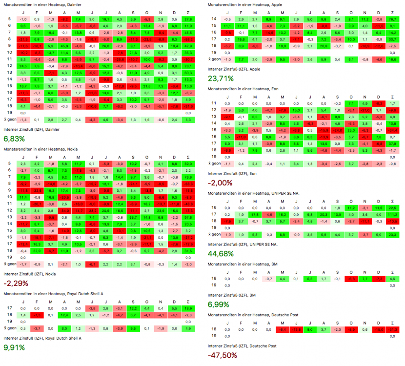 Ramstein Januar 1, 2019 vor 50 Minuten schrieb Sari89: Tolle Aufarbeitung, Respekt! Das sieht man echt selten. Was mich (und ggf. auch andere) interessieren würde: Welche Aktien haben diese (-12,63%) Performance erbracht? Kann man die Zusammensetzung irgendwo einsehen? Es wäre sehr interessant zu wissen, welche Werte sich wie geschlagen haben. Für meine Depots gibt es ein Spreadsheet und Skripte zur automatischen Kursaktualisierung. Da beschränkt sich der Aufwand auf das Eintragen der "Referenzwerte", da ich für die noch nicht die eine Quelle gefunden habe, die ein Downloadskript rechtfertigen. Mein Aktiendepot enthält nur wenige Werte. Die Verlustbringer waren Daimler, Deutsche Post (echt be*********er Einstieg)und Uniper. Diesen Beitrag teilen Link zum Beitrag