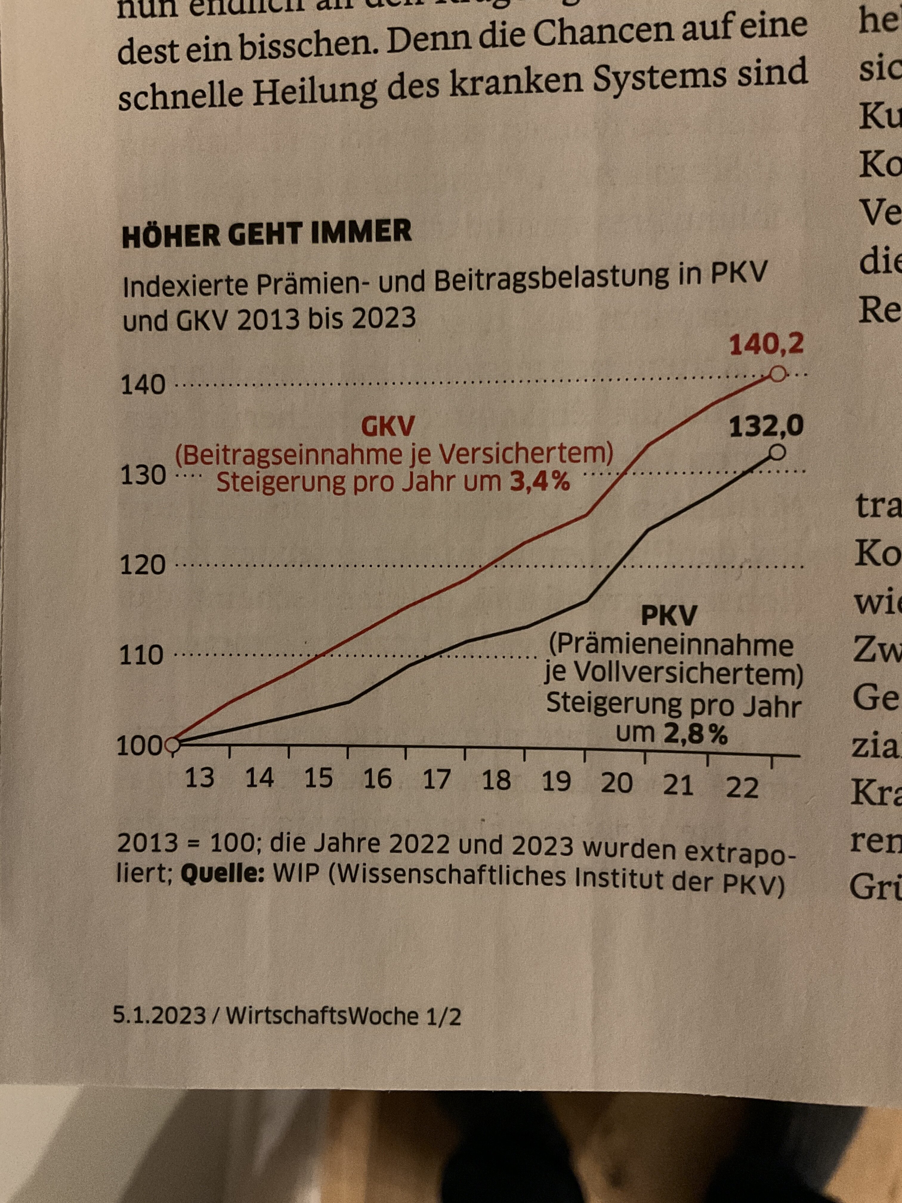 Ja, gibts nur leider nicht, daher muss man sich anders behelfen. Ich find die Statistik als Anhaltspunkt ganz ok. Ich glaube Tenor ist daraus eh: das tut sich eigentlich nix, beides steigt, und ist ziemlich ähnlich bis gleich. Das nehm ich daraus mit. Es soll glaub ich auch nur zeigen, dass man nicht immer denkt „ja ja, die PKV wird immer teurer“, und bei der GKV kriegt man das vielleicht nicht so ganz mit aus der Mischung der Möglichkeiten von BBG Erhöhung, Beitragssatzerhöhung und möglichen Leistungskürzungen (die man am wenigsten mitbekommt oder objektivieren kann)