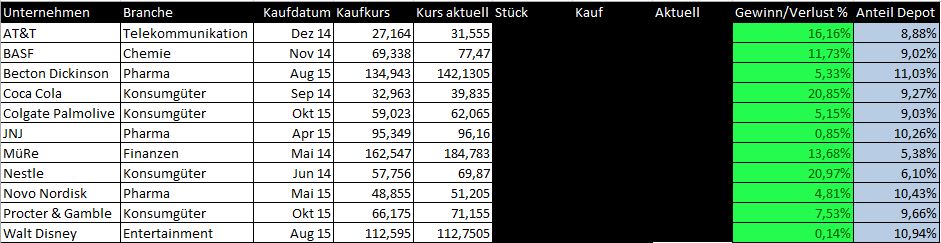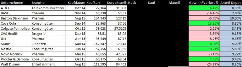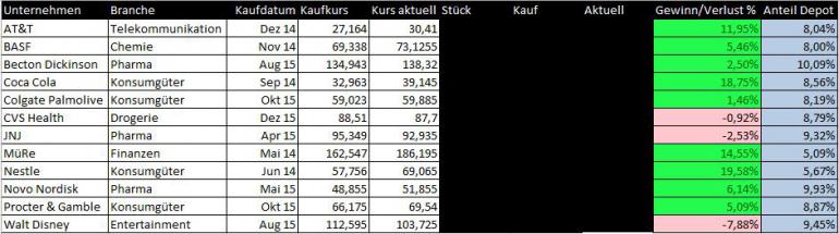 Du unterschätzt die Währungsproblematik. Schau doch mal in den Geschäftsbericht von Novo Nordisk, wie viel bzw. wie wenig Geld in Dänemark in der dänischen Krone und wie viel mehr Geld außerhalb Dänemarks in Dollar (?) erwirtschaftet wird. Der Sitz eines Unternehmens ist bestenfalls aus steuerlichen Gründen (vielleicht auch noch aus politischen, insbesondere in Bananenrepubliken) relevant. Den Großteil seines Geldes verdient Colgate-Palmolive in Lateinamerika. Da sind Länder, in denen einerseits der Sozialismus ein Comeback feiert und andererseits immer wieder (deftige) Inflationen auf der Tagesordnung stehen. Wenn dort der Gewinn (aus Dollar-Sicht bzw. überhaupt) einbricht, ist das alles andere als lustig. - niedrigere Gewinne = niedrigere EPS = Überbewertung der Aktie, da zu hohes KGV = entspr. Korrektur des Aktienkurses nach unten = ärgerlich für den Aktionär - Bei P&G dürfte ein Blick in den Geschäftsbericht helfen. Hätte ich schon vor dem Kauf gemacht. Du solltest den um die Verkäufe bereinigten Gewinn ermitteln. Wie es aussieht, zahlt P&G auch weiterhin so eine hohe Dividende wie vor den Verkäufen? Wie soll das nun mit entsprechend niedrigeren Gewinnen dauerhaft gehen? In der Vergangenheit lag die Ausschüttungsquote bei gut der Hälfte, 2015 über 100%. Beinhartes Dividend Growth Investing hat halt auch seine Tücken. 5% p. a. bei Coke sind ganz nett. Der Burner ist das allerdings nicht. Und die EPS stagnieren bei Coke nicht nur gelegentlich mal, sondern schon seit Jahren.