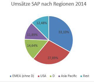 Hier die Umsatzverteilung von SAP nach Regionen in 2014