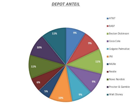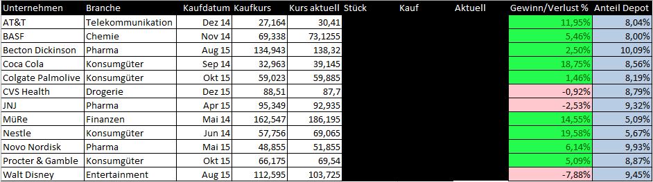 - Aufstocken von Disney und BASF mit 1/2 Position, dazu Neukauf einer 1/2 Position Church & Dwight (finde ich aktuell durchaus wieder kaufenswert) und behalten 1/2 Position Cash.