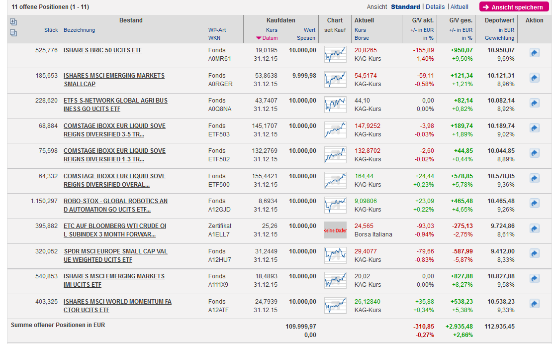 Cai Shen Juli 2, 2016 Danke für die zunehmend akzeptable Kombitabelle. Schon zur Halbzeit der ultimative Beweis, dass Amateure beinahe als geschlossene Gruppe die Profis überflügeln können. Oder liegt's daran, dass ETF gar nicht am Aktienmarkt teilnehmen? pendele eigentlich lieber zwischen Klo und Kühlschrank Muss der Flur jetzt eigentlich nochmal aufgemoppt werden? Diesen Beitrag teilen Link zum Beitrag