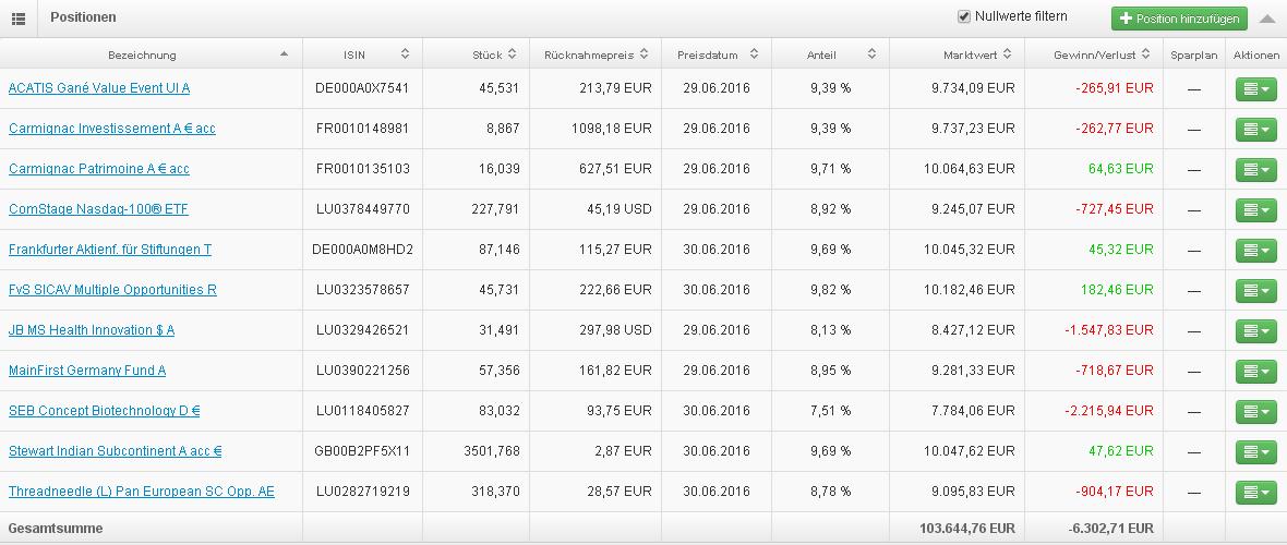 Schlumich Juli 29, 2016 · bearbeitet Juli 29, 2016 von Schlumich So - der Turn around ist geschafft. Das Depot ist im grünen Bereich. Stand: + 0.41% Biotech und Health verhageln leider noch die Bilanz..... Diesen Beitrag teilen Link zum Beitrag