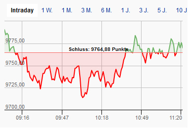 Nur wenn der Kurs bis mittags die 9795 übersteigt kann es aufwärts gehen bis 9840 und 9900.